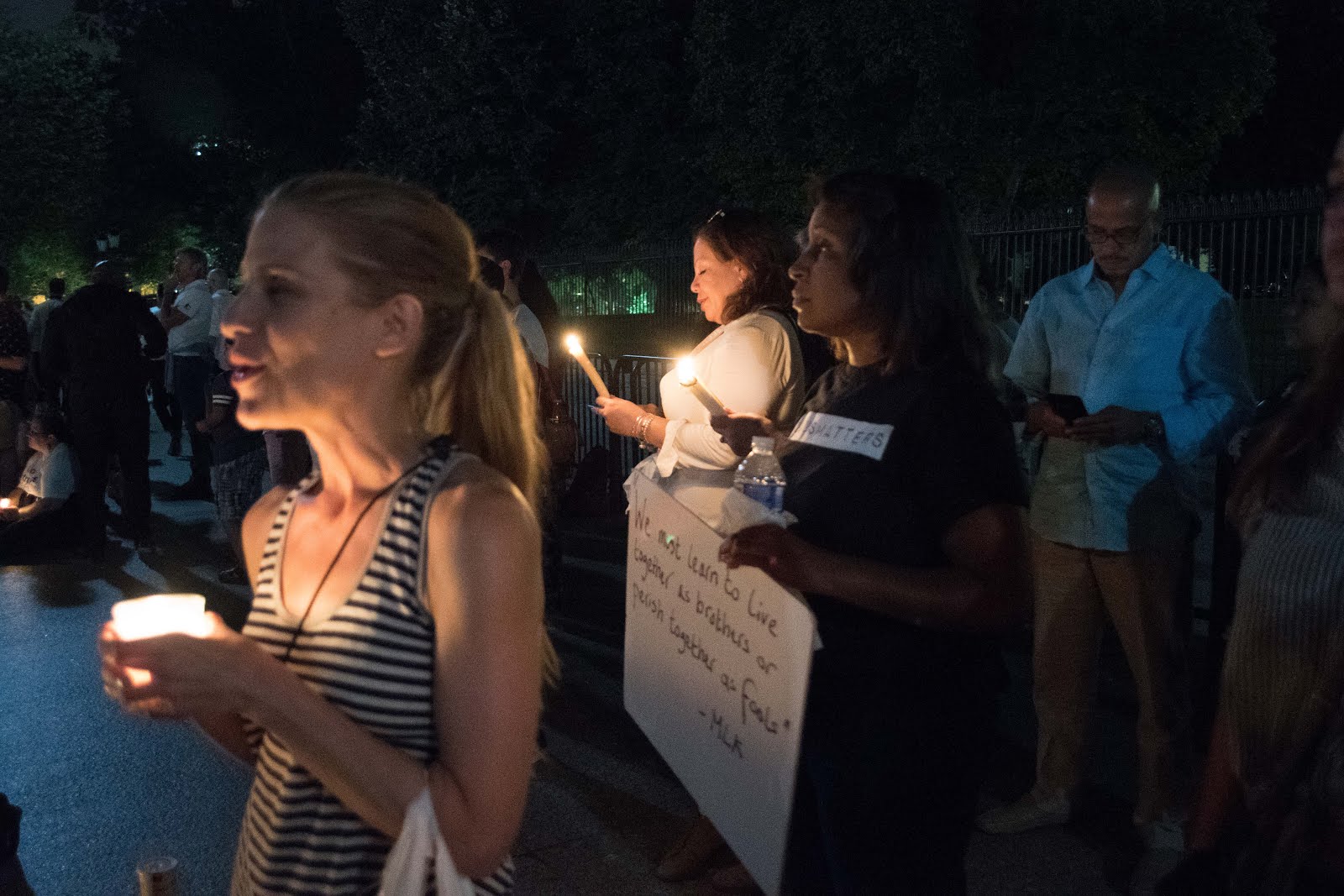 I edited this post the following day after catching up with the news about Heather Heyer being run over and murdered by a neo-Nazi in Charlottesville. I had seen the name on the above poster but knew nothing about it at the time. I had noticed some of the women crying in groups while others sang.